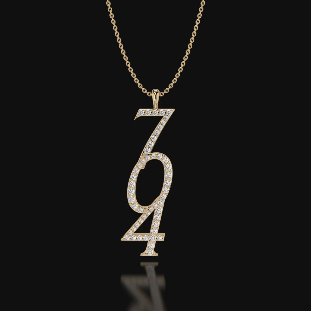 This exquisite necklace features a delicate 14k gold chain adorned with a stunning diamond-encrusted area code pendant. The pendant is crafted from lustrous 14k gold and carefully set with brilliant-cut, ethically sourced diamonds, adding a touch of sparkle and sophistication to this timeless piece.