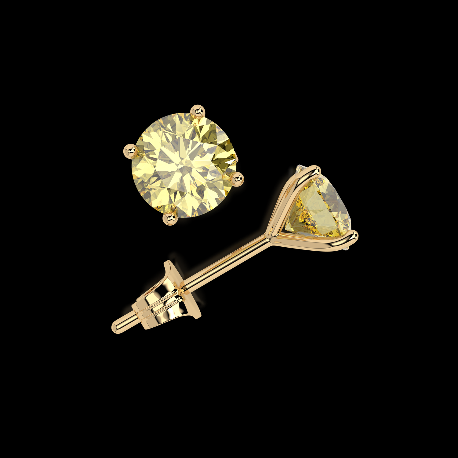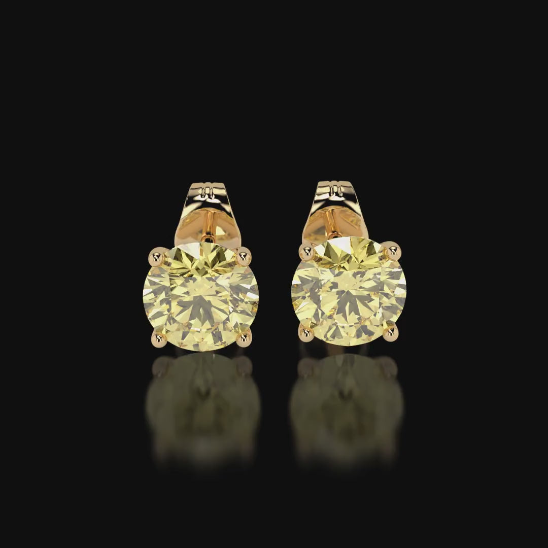 The Golden Glow earring (1ct per stone) features a pair of 1 carat natural yellow diamonds set in radiant yellow gold, exuding a captivating warmth and vibrancy reminiscent of the sun's golden rays. The striking hue of the natural yellow diamonds is beautifully accentuated gy the lustrous 18k yellow gold setting, creating a harmonious and luxurious aesthetic that effortlessly brightens any look. These earrings are a celebration of individuality and joy, offering a timeless elegance and a touch of radiance to the wearer's ensemble. Elevate your style with the enchanting allure of the Golden Glow, a symbol of sophistication and optimism.