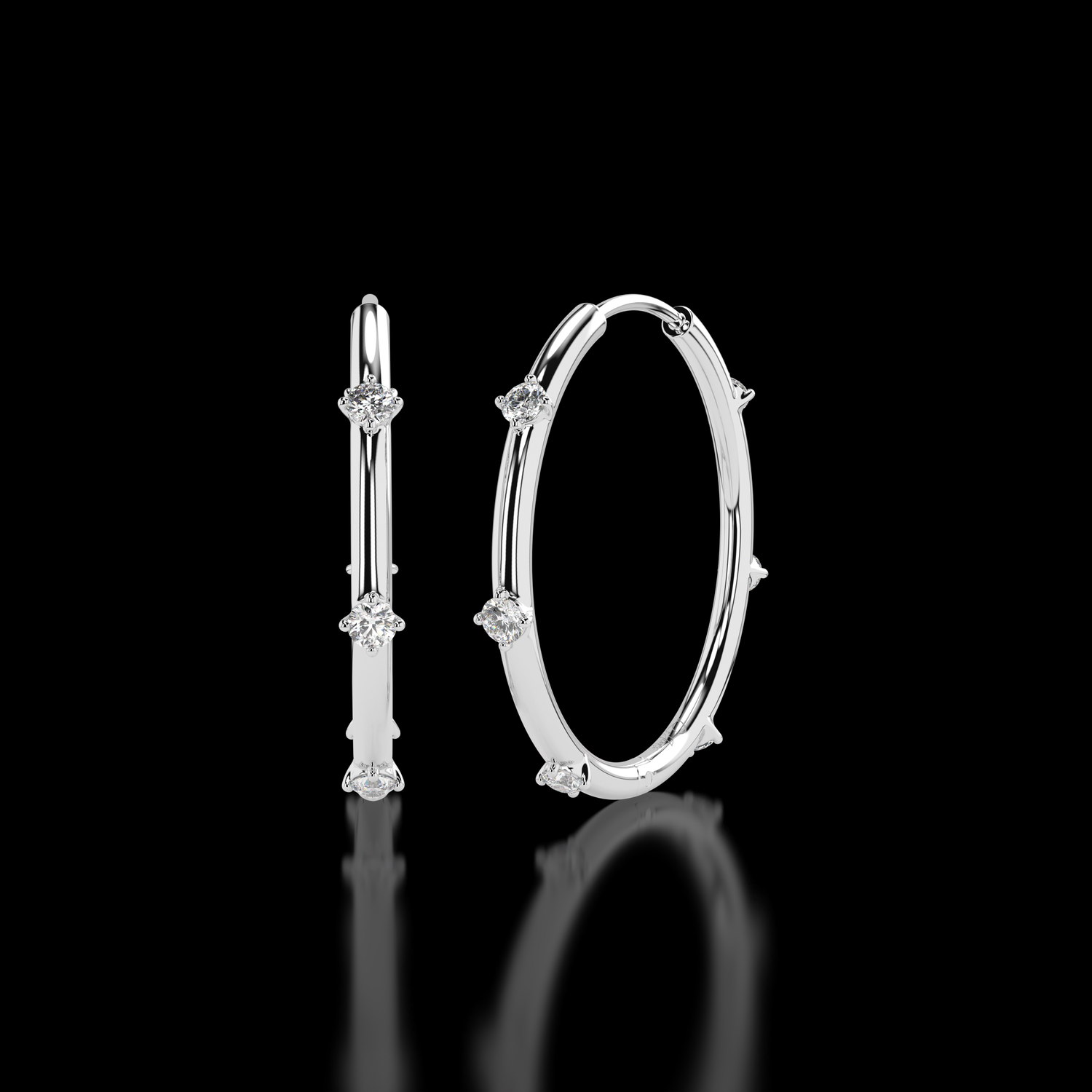 Elevate your style with these exquisite 14k gold and diamond hoop earrings that exude timeless elegance and sophistication. Each hoop is meticulously crafted from radiant 14k gold and adorned with a row of shimmering diamonds that catch the light with every movement. The brilliant diamonds add a touch of sparkle and luxury to these classic hoop earrings, making them a versatile accessory perfect for any occasion. Whether you're dressing up for a special event or adding a touch of glamour to your everyday look, these Golden Sparkle diamond hoop earrings are sure to make a statement. Embrace the beauty of understated luxury with these stunning earrings that will effortlessly complement any outfit.