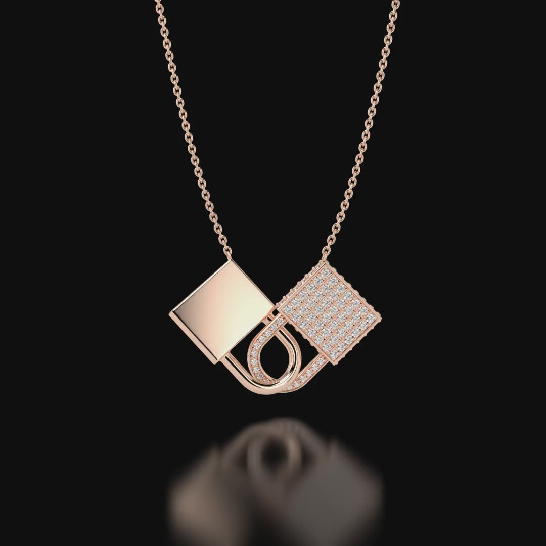 Embrace the essence of love with this stunning double lock pendant crafted from lustrous 14k gold. The intertwining locks symbolize the unbreakable bond shared between two hearts, making it a meaningful and romantic piece of jewelry. One lock, is adorned with brilliant diamonds that exude elegance and sparkle with every glance. This pendant is a timeless and sophisticated accessory that captures the beauty of everlasting love. Wear it close to your heart as a reminder of the precious connection you share with your loved one.