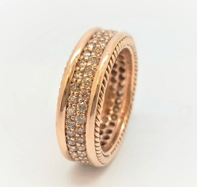 The Duke Collection, is proud to present the Rosé ring. This ring consist of rose gold with champagne diamonds circulating the band. Let's cheers to that!
