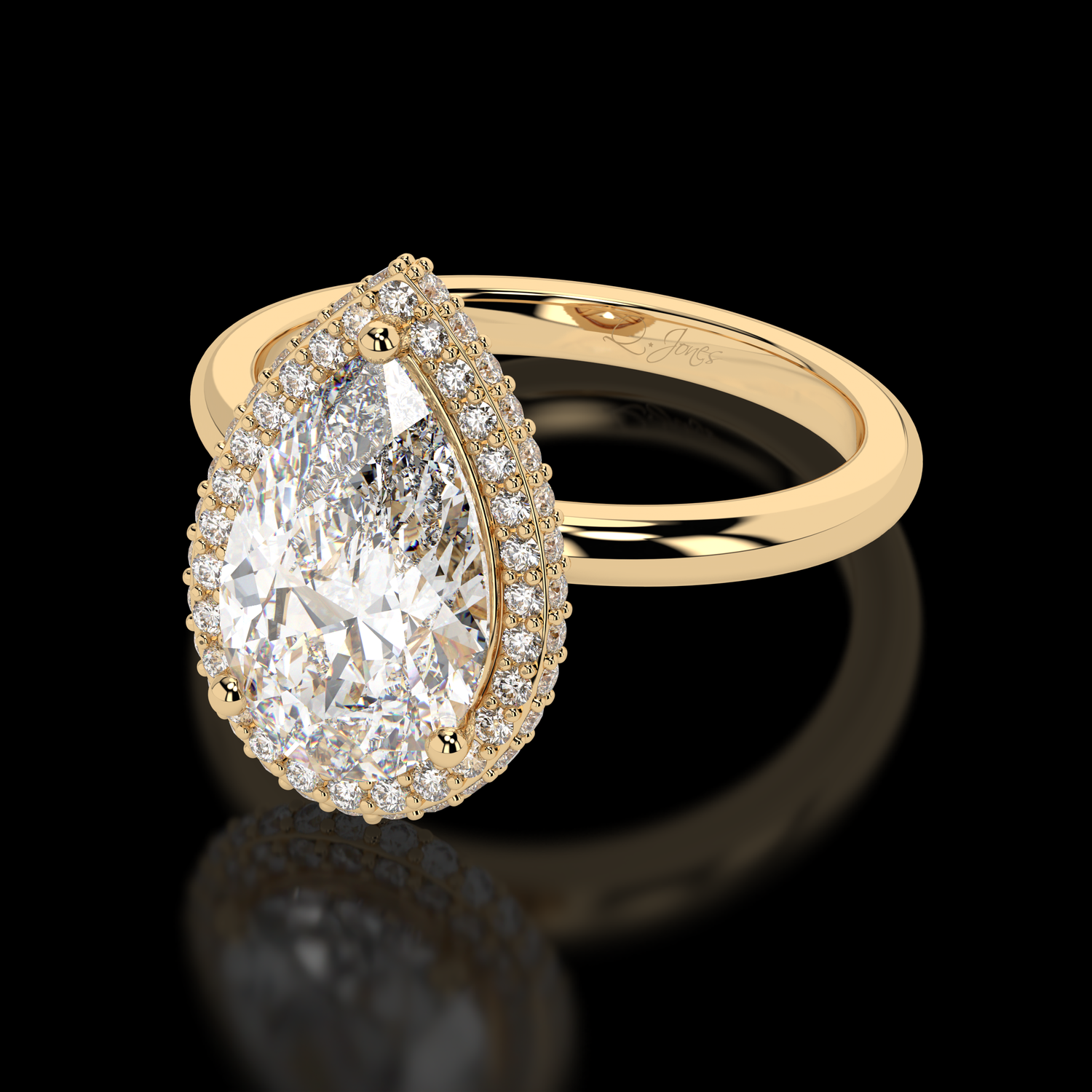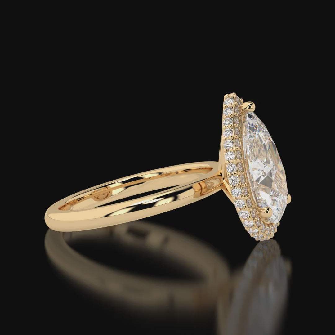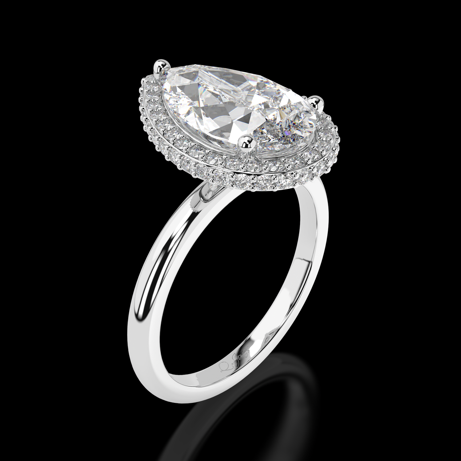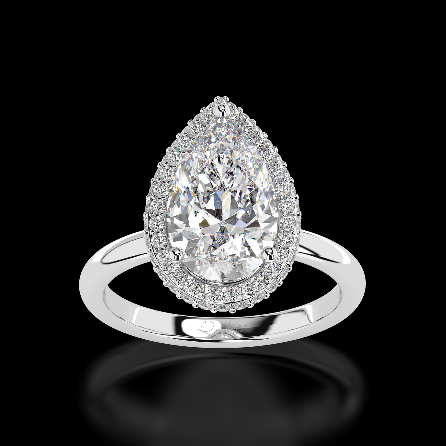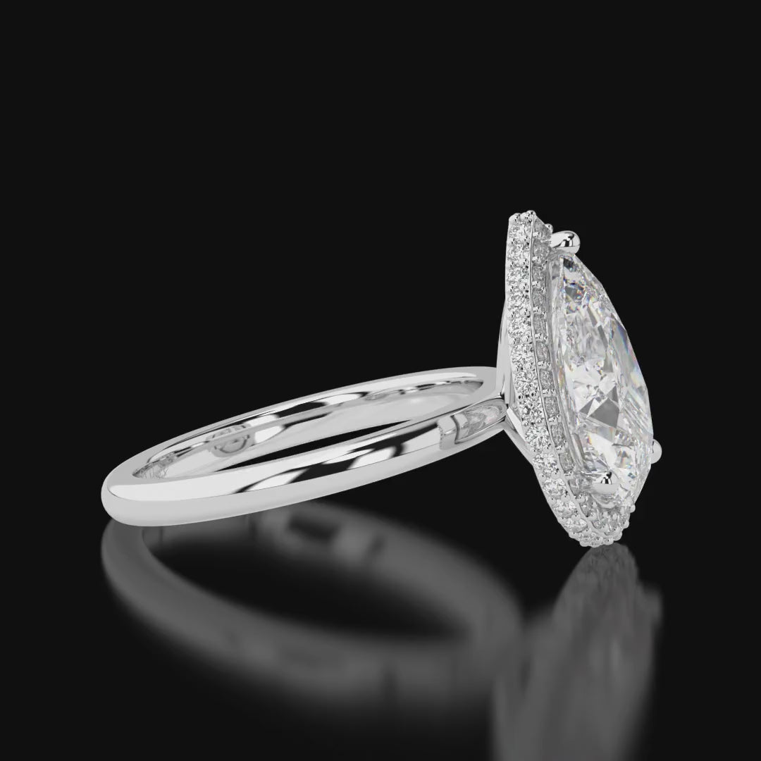A symbol of timeless romance and enduring love, this 3ct pear-shaped diamond engagement ring is a true masterpiece. The graceful pear-shaped diamond is embraced by a delicate band, evoking a sense of classic romance and sophistication. Its timeless design and exquisite craftsmanship make it a perfect representation of a love that will last a lifetime.